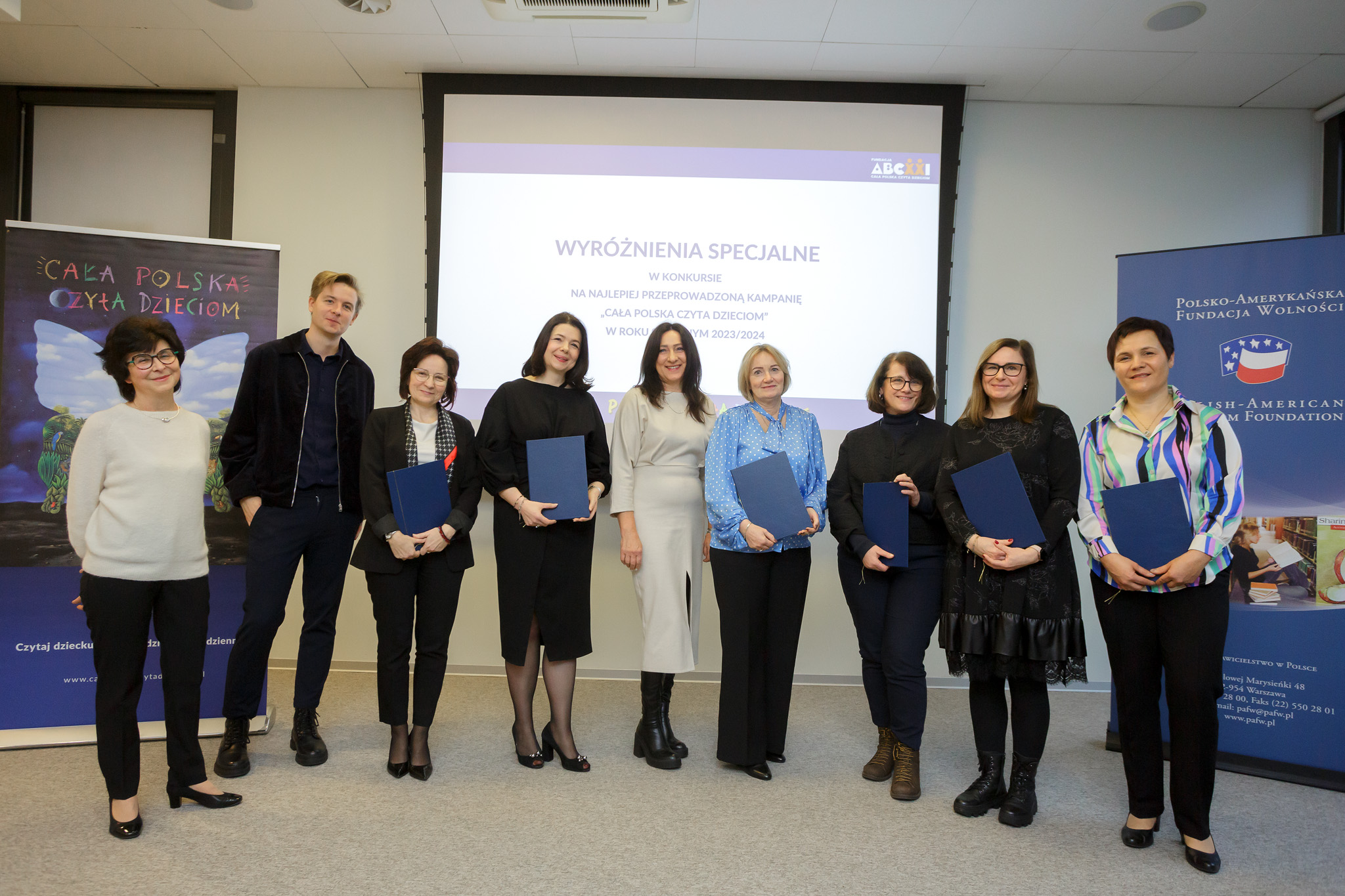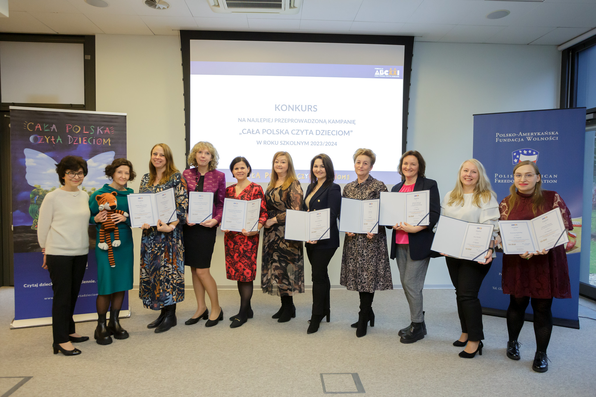 9 grudnia br. w siedzibie Polsko-Amerykańskiej Fundacji Wolności w Warszawie odbył się Finał kampanii „Cała Polska czyta dzieciom” 2024. Podczas spotkania wręczone zostały nagrody i wyróżnienia w konkursie na najlepiej prowadzoną kampanię czytania w roku szkolnym 2023/2024; po uroczystości odbyło się seminarium literackie pt. „Jak zachęcić dziecko do czytania?”